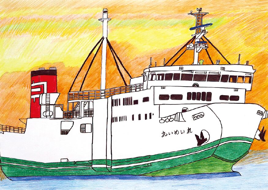 また、河野氏のフェリーへの愛情は単なる趣味にとどまらず、観察眼と探究心に裏打ちされています。それぞれの船の特徴や違いを丁寧に描き分けることで、単なる風景画ではなく、船そのものの個性とストーリーを映し出すアートとなっています。