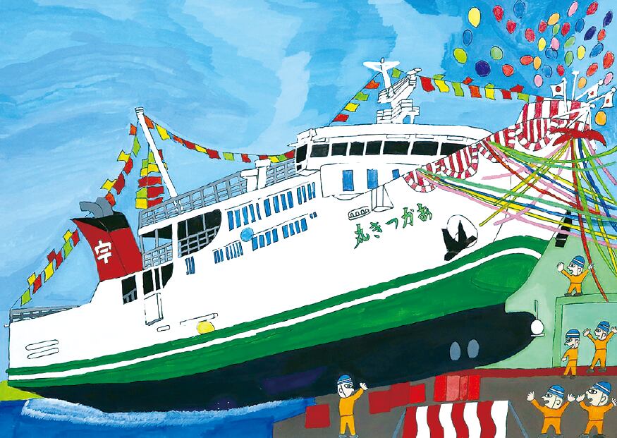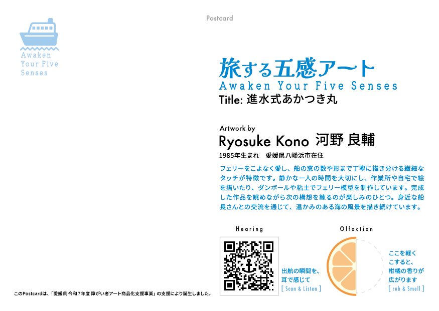 障がい者アーティスト 河野良輔/ポストカード 「旅する五感アート」/04 進水式あかつき丸