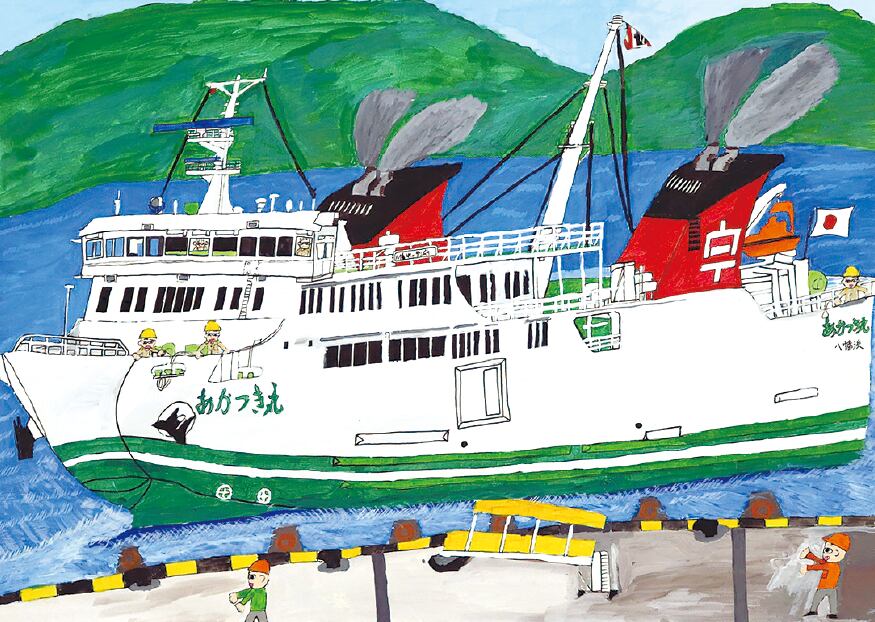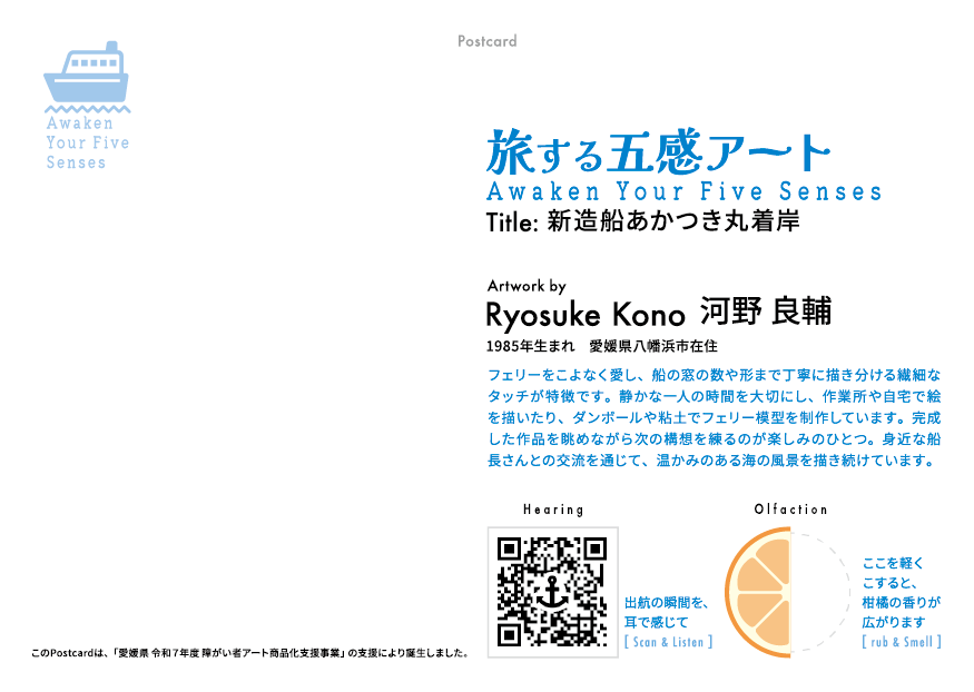 障がい者アーティスト 河野良輔/ポストカード 「旅する五感アート」/05 新造船あかつき丸着岸