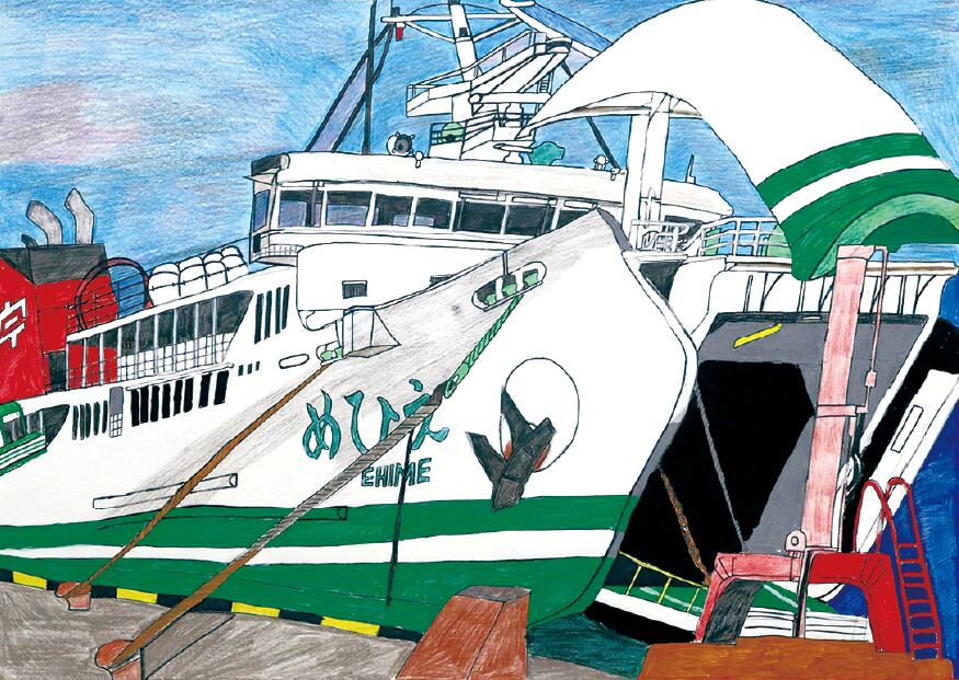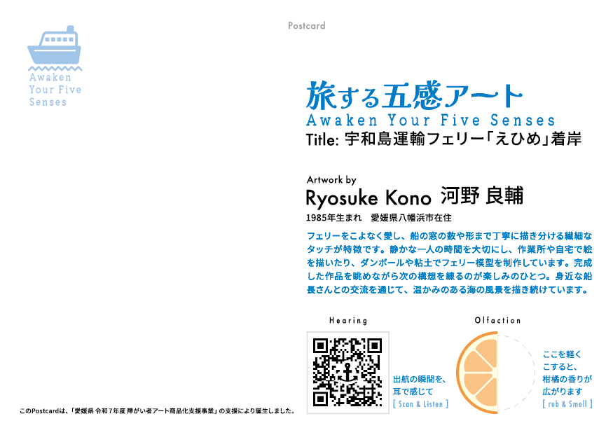 障がい者アーティスト 河野良輔/ポストカード 「旅する五感アート」/06 宇和島運輸フェリー「えひめ」着岸